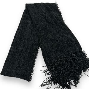 NEW Style & Co Black Chenille Scarf with Fringe Trim Oblong Winter Plaid Neutral