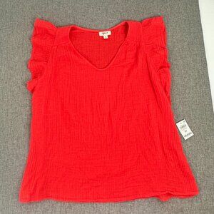 NEW! Style & Co Gauze Top Plus 3X Tropical Punch Flutter Cap Sleeves Lightweight
