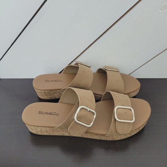 NEW Style & Co. Temppestt Womens 9M Tan Platform Sandal Straps & Cork 4CT