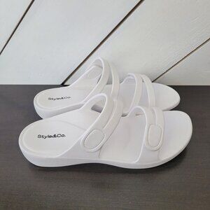 NEW Style & Co Women's 10M White Jessaa Slide Sandals With Adjustable Straps