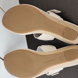 Style & Co Women's 8.5 Ivory Raffia Wedge Sandals W/ Gold Buckle