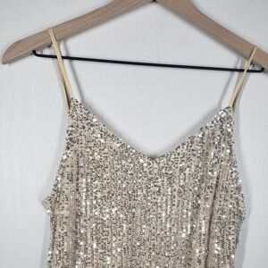 NEW Style Rack Strappy Sequin Dress S Beige Champagne Sparkle Midi Maxi NWT