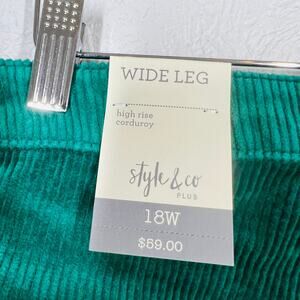 NEW! Style&Co Wide LEg High Rise Corduroy Trouser Pant Green - 18W