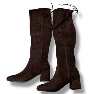 NEW Sugar Brown Over The Knee Boots Size 6.5 Micro Suede Tall Heeled OTK Boots