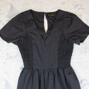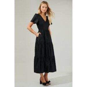 NEW Sugar Lips Alexis Black Poplin tiered smocked midi dress womens size Small S