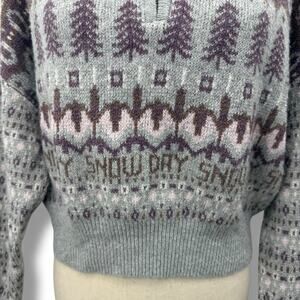 NEW Sugar Moon Nordic Pullover Sweater Medium Gray Purple Winter Islandic Print