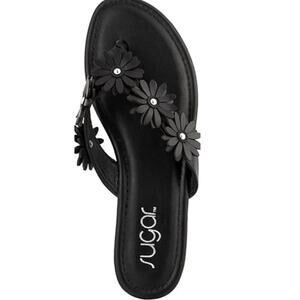 Sugar Women's Finnesse Thong Flat Sandals Size 9.5M Faux Leather Flower