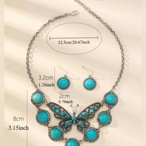Elegant huge turquoise butterfly necklace and earring set. Perfect for adding a pop of color to any outfit.