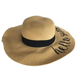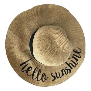 NEW Sun Hat CC Creations Beach Straw Embroidered "Hello Sunshine"_Large Floppy