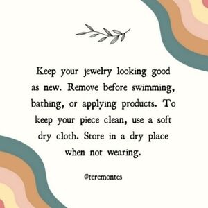 👉Keep your jewelry looking good as new. Remove before swimming, bathing, or applying products. To keep your piece clean, use a soft dry cloth. Store in a dry place when not wearing.