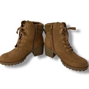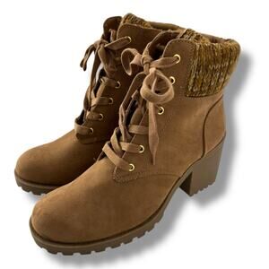 NEW Sun + Stone Macy's Brown Lace Up Booties Size 9 Hiking Chunky Knit Trim Lug