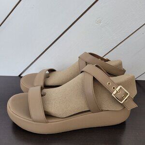 NEW Sun Stone Simonee Ankle-Strap Platform S Tapioca 10M Beige Sandals Women's