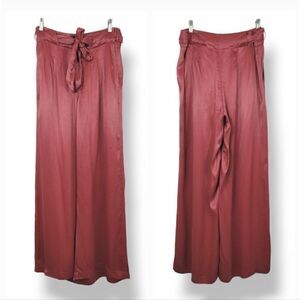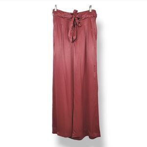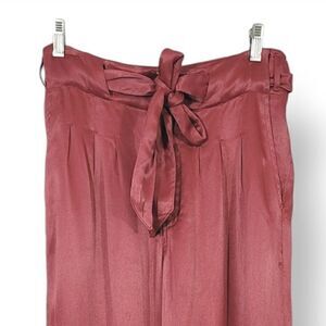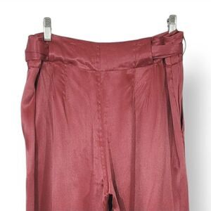 NEW Sundance Satin Tie Waist Wide Leg High Rise Trousers in Dark Rose Size 12