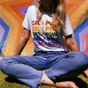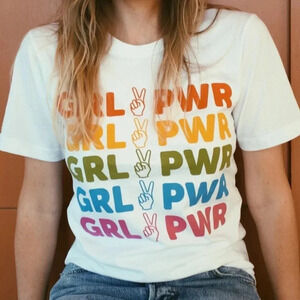 NEW! Sunday Fun “Girl Power” Rainbow Graphic Cotton Short Sleeve T-Shirt