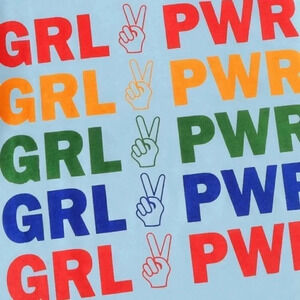 Looking for a super comfy and totally cute t-shirt? Well, this one is made soft and breathable cotton and has the most adorable rainbow graphic slogan that says “GRL PWR” on the front! Crew neck, short sleeves, and a gorgeous sky blue color. Super comfy and easy to play up! Perfect for those girlie Sunday’s with your girls!