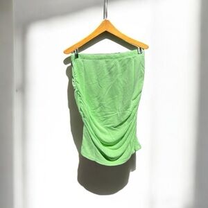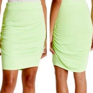 🌻NEW Sundry Florescent Green Bodycon Skirt w/ Ruched Seams Size 0 / XS