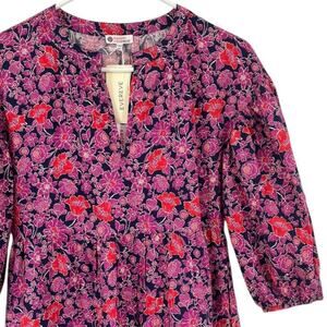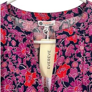 NEW Sundry for Evereve Anywhere Tiered Dress in Ditzy Floral Print. Navy Blue Background with Pink and Red Flowers. 100% Cotton. Pockets Women's 0 (XS).