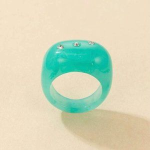 NEW Super Cool Mint Green Resin Ring w Rhinestone Accents Sz 7.5