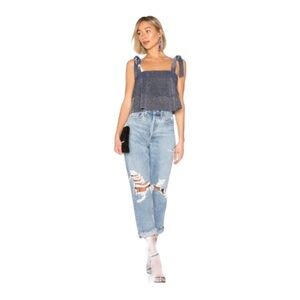 NEW Superdown Helene Top Shoulder Ties In Metallic Blue