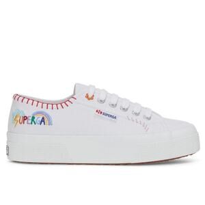 NEW Superga Happy Logo Womens White Sneakers. Colorful Embroidery Canvas Size 8