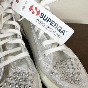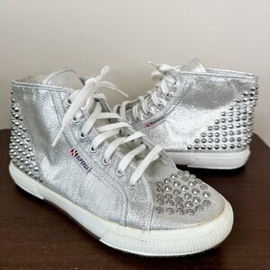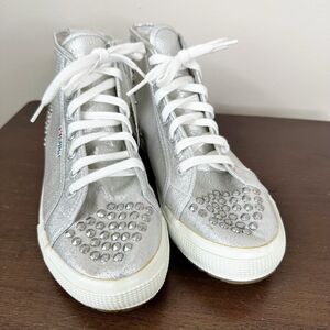 NEW Superga Sneakers Unisex Adults Silver Studded High Top Lace Up Shoes