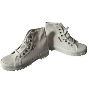 NEW Superga Unisex White Canvas Lace Up High-Top Sneaker Boots-Men 4.5-Women 6