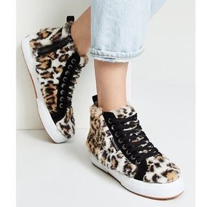 NEW Superga X Anthropologie Leopard Faux Fur High Top Sneakers