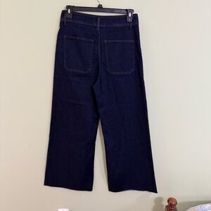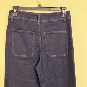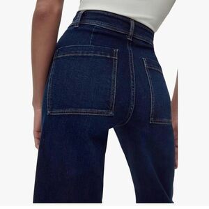 Elevate your style with these classic blue wide-leg jeans. Perfect for any occasion, these jeans offer comfort and a timeless look.