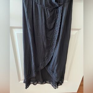 Beautiful detailed swim cover. Faux wrap front, high low hem.