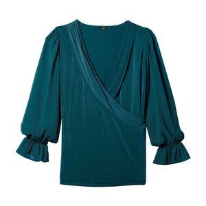 It’s a wrap! Your perfect simple-yet-elegant top in jewel-tone teal. Finished with pretty poet-sleeve details at wrist.