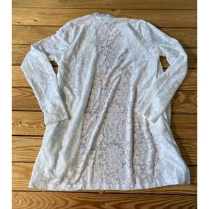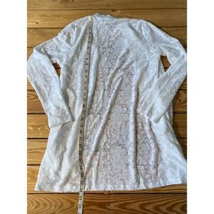 Susan Graver Women’s White Burnout Knit Open Front Duster Cardigan Size 2XS