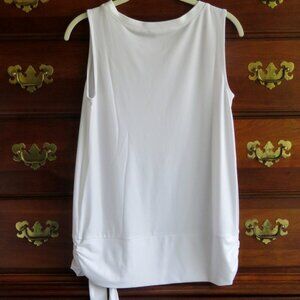 NEW Susan Graver Every Day Liquid Knit Sleeveless Rib Trim Top w/Tie XXS - White