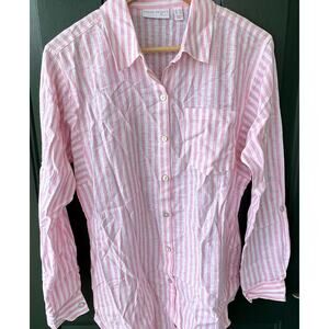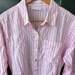 Keywords: QVC, Susan Graver Pure, summer linen shirt, preppy style, coastal capsule, pink striped blouse, lightweight layers, classic casual, resort style, pocket shirt, relaxed button-down, beachy polish, travel wardrobe, crisp tailoring, coastal grandmother