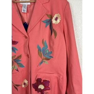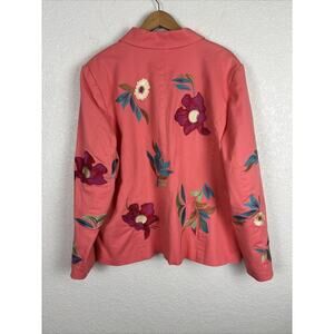 NEW Susan Graver Women Blazer Jacket Sz XL Orange Coral Embroidered Floral Artsy