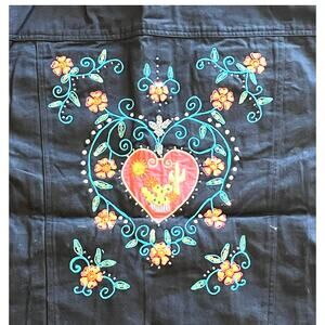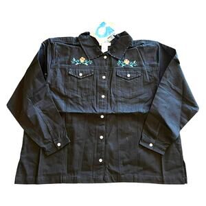 NEW Susan Graver Womens 3X Black Denim JEAN JACKET Embroidered Beaded Sequin Cactus Sun Flowers - BRAND NEW With Tags!