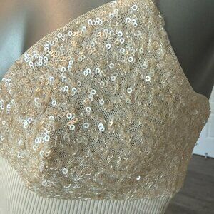 NEW Susana Monaco Sequin Bralette With Rib Trim Biege XS