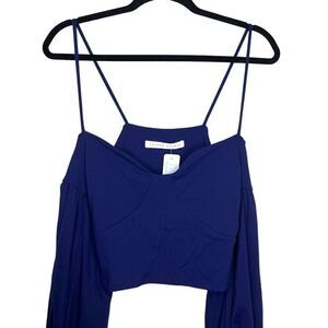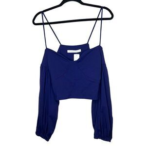 NEW Susana Monaco Strappy Off Shoulder Puff Sleeve Deep Blue Top Small