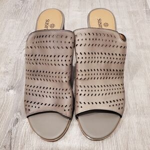 NEW Susina Danella Perforated Block Heel Sandals Taupe