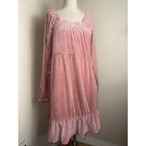NEW Suzanne Betro Dress Dusty Pink Ribbed Stretch Maxi Ruffle Hem Size Large NEW