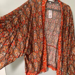 NEW Suzanne Betro boho open front cardigan lightweight flowy kimono top shirt