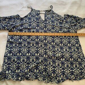 NEW Suzanne Betro cold shoulder lightweight flutter sleeve flowy shirt top blouse