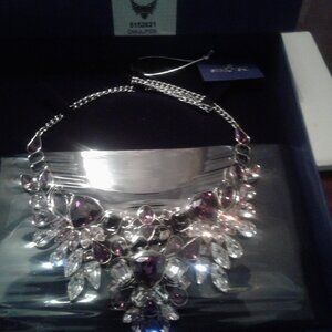 NWT - Authentic Swarovski Statement Necklace - "Miranda Kerr" - Purple (dark purple and light purple), white, and black Swarovski clear crystals in varying sizes and shapes. It has never been used/unopened - see plastic wrapping. All the packaging/boxes are provided.
