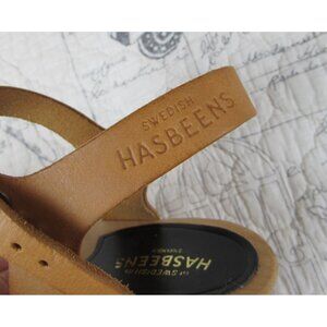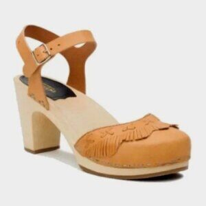 NEW Swedish Hasbeens Tan adorable Leather Fringy Clog Sandal EU 39 US 9love love lovebrand new without boxwomen's size EU 39 / US 9gold tan leather with cringestrap buckleNEW Swedish Hasbeens Tan adorable Leather Fringy Clog Sandal EU 39 US 9