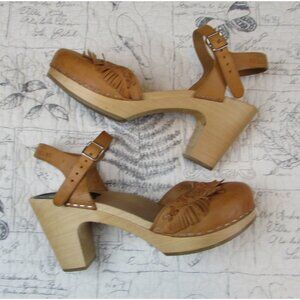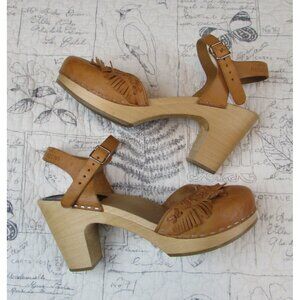 NEW Swedish Hasbeens Tan adorable Leather Fringy Clog Sandal EU 39 US 9