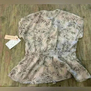 NEW Sweet Rain Young Contemporary XL floral pink button & tie blouse