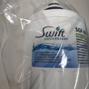The GE Swift Green Replacement Water Filter SGF-MXRC is a brand new water filter designed for Ge appliances. This filter is compatible with GE refrigerators and is made by Swift Green Filters. It is a white filter with dimensions of L 6.8 x W 3.3 x H 3.1 inches and weighs 13.2 pounds. This product is essential for maintaining clean and fresh water in your refrigerator, ensuring that your appliance is always functioning at its best.