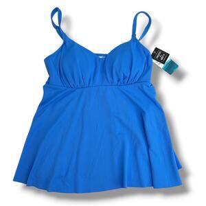 NEW Swim Solutions Blue Textued Tankini Top Size 10 A-Line Flowey Swimsuit beach