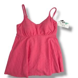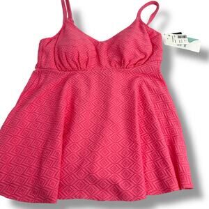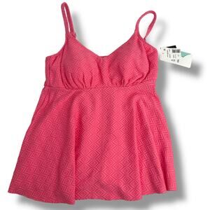 NEW Swim Solutions Coral Tankini Top Size 8 Light Pink Textured V-Neck Swim Suit