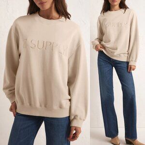 NEW Syd Z Supply Embroidered Logo Sweatshirt Pullover M Stone Crewneck $79 NWT