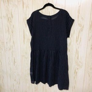 Symphony + Note Striped Peplum Mini Dress/Swim Coverup. Cap Sleeves. 3-Button Back Closure. Oversized. Semi-Sheer.